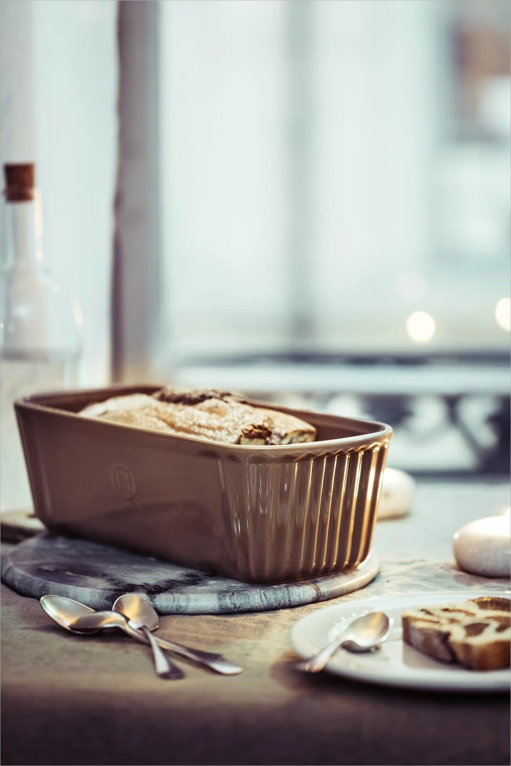 Die Kastenform aus hochwertiger ofenfester Keramik von Emile Henry ist nicht nur schön groß und tief, sondern besticht auch durch seine nostalgische Note. Die Form gibt die Hitze während des Backens sanft und gleichmäßig an das Backwerk weiter, wodurch der Teig schön gleichmässig durchbackt. Auch die Ränder trocknen nicht aus! Dank der widerstandsfähigen Innenglasur kann der fertige Kuchen direkt in der Form am Tisch serviert und geschnitten werden – sie ist sehr robust und schnittfest. Und wenn alles verputzt ist, kann die Kastenform ganz einfach in die Spülmaschine gegeben werden.