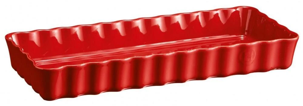 Emile Henry Kuchenform lang in granatapfel. Die ofenfeste Keramikform eignet sich für die Zubereitung von Kuchen, saftigen Quiches und Tartes, knusprigen Gratins und Aufläufen.