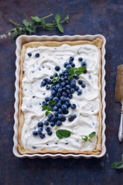 Emile Henry Kuchenform rechteckig in ton. In der breiten Keramikform lassen sich neben saftigen Kuchen auch knusprige Aufläufe, Gratins, Quiches und Tartes zubereiten.