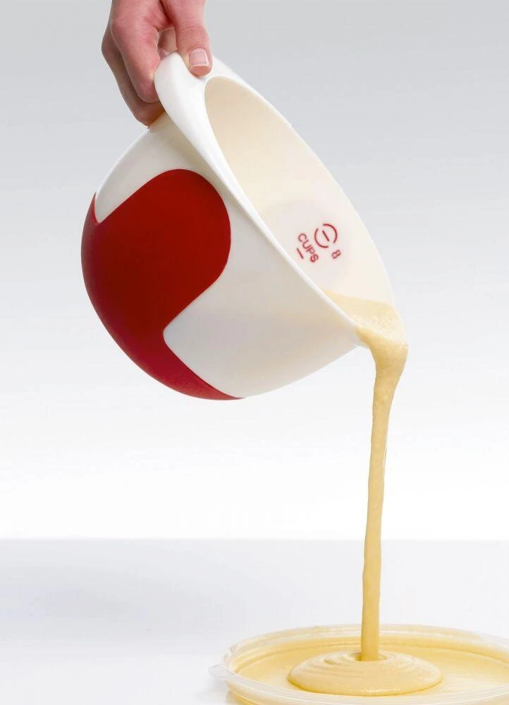 - Integrierter Teigschaber: Der rote Mittelteil des Deckels ist extrem flexibel, so dass er nicht nur die Schüssel perfekt abschließt, sondern auch als Teigschaber dient.