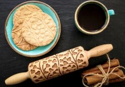Das kreative Plätzchenbacken kann beginnen! Einfach den Plätzchenteig nach mitgeliefertem Rezept herstellen und zunächst mit einer glatten Teigrolle 5 mm dick ausrollen. Dann Mehl über den ausgerollten Teig streuen und mit der Folkroll gleichmäßig über den Teig rollen. Wie gehabt, Plätzchen mit Ausstechformen ausstechen, backen und genießen!