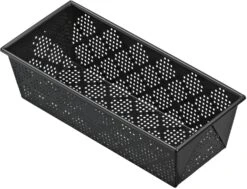 Das Lieblingsbrot einfach selber backen, das gelingt mit den perforierten Brotformen der Serie Inspiration. Dank der CrispTec Perforierung werden die Brote noch krosser, und die Krume bleibt schön weich. Die vier Seiten und der Boden der Form sind perforiert, die heiße Luft zirkuliert besser, und Feuchtigkeit kann entweichen. Dadurch wird die Kruste überall knusprig, und der Boden wird nicht weich. Die rechteckigen Formen gibt’s in zwei verschiedenen Größen, sie sind mit einer sauerteigbeständigen Antihaftbeschichtung versiegelt. In den schwarzen Formen backt der Teig locker, erhält eine gleichmäßige Bräunung und lässt sich leicht aus der Form lösen, ohne anzubacken. Die hochwertige Verarbeitung aus antihaftbeschichtetem. Die Formen werden per Handwäsche gereinigt.