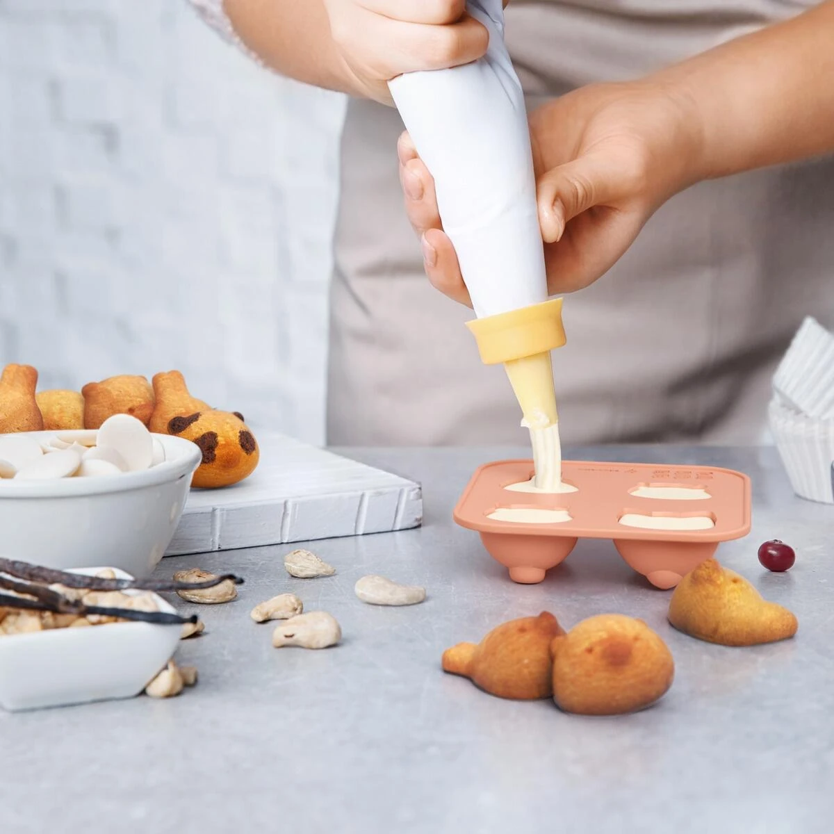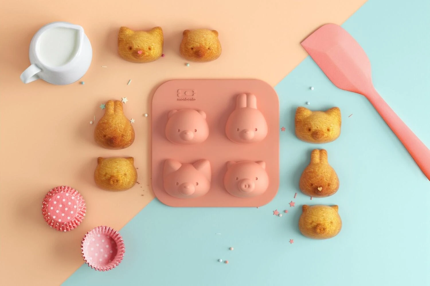 Monbento Silikonform mit Tiermotiven, 2 tlg.. Süße Backform mit 4 verschiedenen Tiermotiven für Muffins, Küchlein, Eis, Eiswürfel, Schokolade und mehr. Perfekt für den kleinen Hunger und für Naschkatzen.
