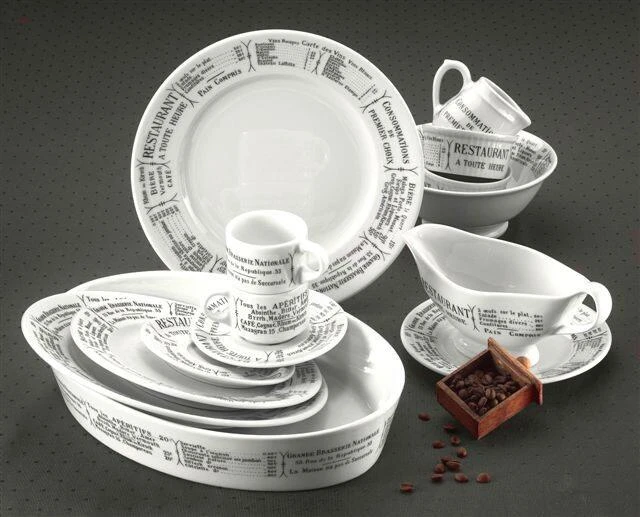 Pillivuyt Dekor Brasserie ist mit einer Speisekarte eines Pariser Bistros bedruckt. Damals konnte jedes Bistro, jede Brasserie und jedes Restaurant seine Speisekarte in das eigene Geschirr einbrennen lassen. Heute befindet sich auf dem Pillivuyt Dekor Brasserie die Speisekarte des fiktiven französischen Bistros “Grande Brasserie Nationale, 33 Rue de la République – Consommation de Premier Choix”.