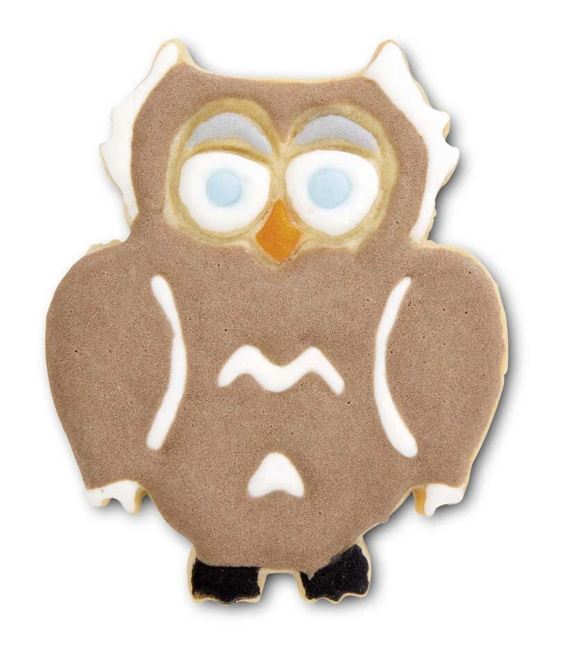 Der Präge-Ausstecher formt eine sehr hübsche Eule mit vorgeprägtem Gefieder, Schnabel, Flügeln und natürlich mit besonders großen Eulenaugen.