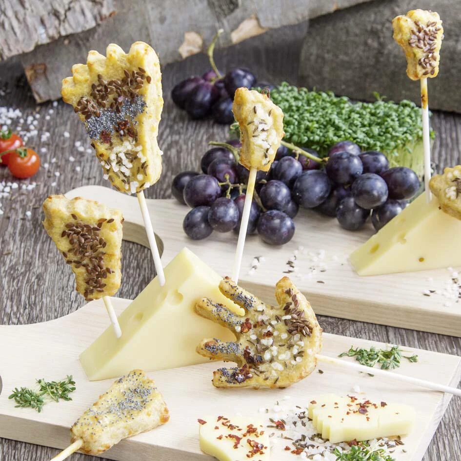 Im Käsefüße-Set befinden sich drei Fuß-Ausstecher unterschiedlicher Größe. Die herzhaften Käsefüße sind ein toller Snack für zwischendurch oder mit einem Glas Wein.