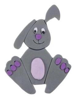 Der ist ja niedlich! Unser Hase hat ganz große Pfoten, ein Schlappohr und ein freundliches Gesicht.