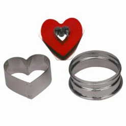 Dieser Linzer-Ausstecher ist ein ganz besonderes Modell, weil er neben dem herzförmigen Außenrand auch ein weiteres Herzmotiv in der Mitte besitzt.