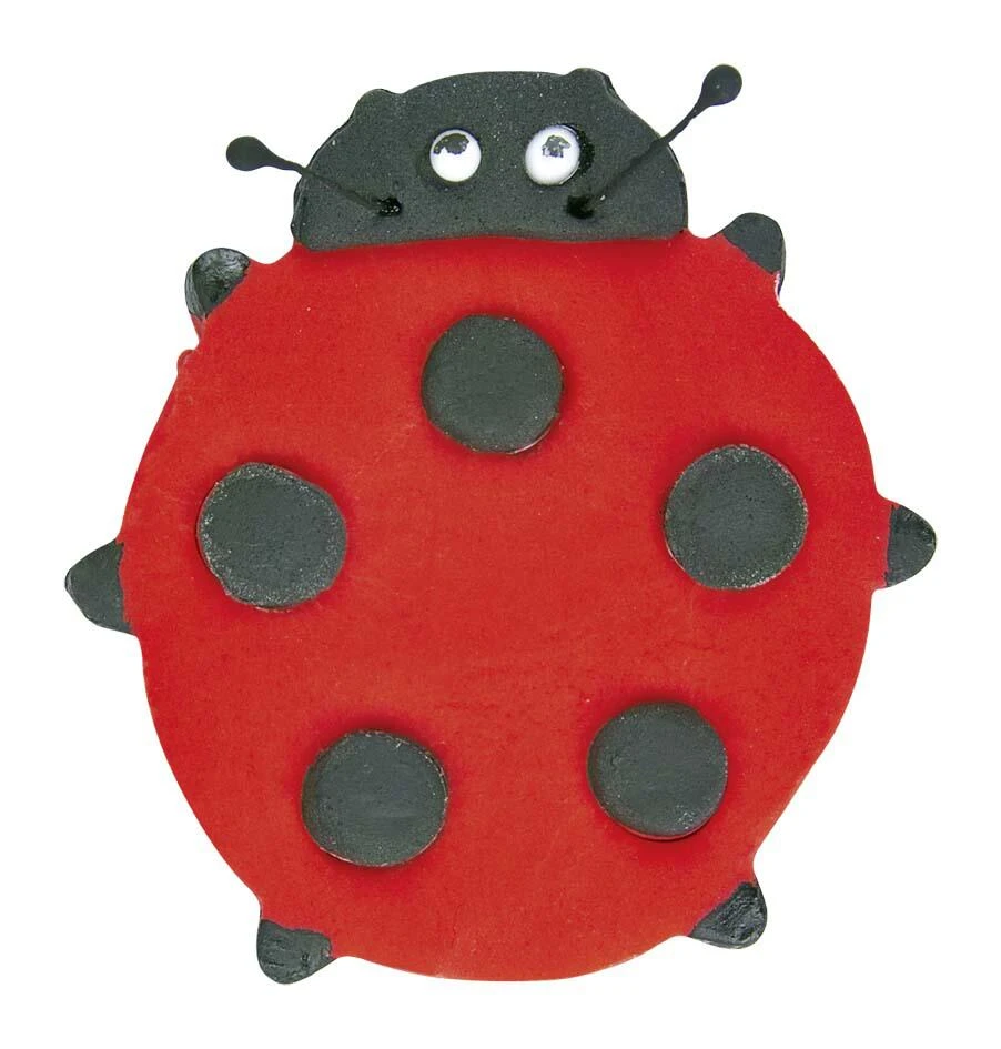 Putziger Marienkäfer – unser Ausstecher prägt die typischen Punkte auf den Deckflügeln bereits vor.