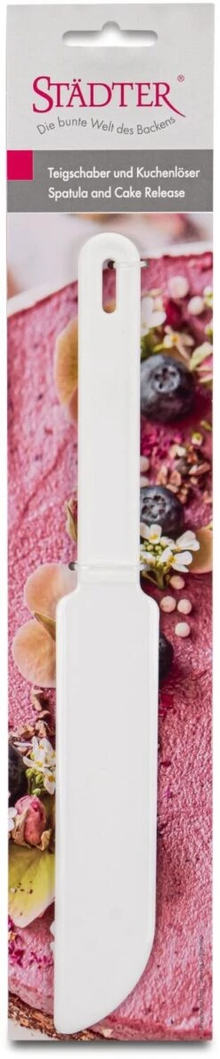 Städter Backhelfer Teigschaber & Kuchenlöser 27 x 3,5 cm Weiss. Um den Teig restlos von der Schüssel in die Backform zu bekommen und dann spielend leicht aus der Form zu lösen. Kunststoff- und lebensmittelecht.