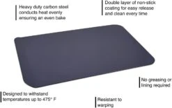 Dieses Backblech aus doppelwandigem Karbonstahl ist besonders robust und formstabil und absolut flach, so dass sich Backwaren zum Abkühlen problemlos auf ein Abkühlgitter schieben lassen, ohne zu zerbrechen. Hergestellt aus robustem, formstabilen Karbonstahl ist es leicht zu reinigen. Einfach in warmem Seifenwasser von Hand waschen, abspülen und gründlich trocknen oder in den Geschirrspüler geben. Wie bei allen Metallwaren mit Antihaftbeschichtung sollten niemals Topfkratzer oder aggressive Scheuermittel verwendet werden.